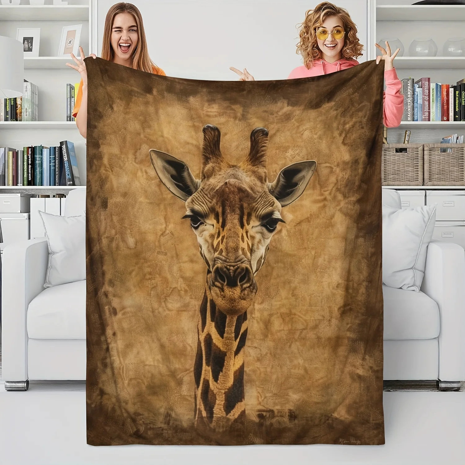 Bohemian Giraffe Print Flannel Blanket – Soft Cozy Sofa & Bed Throw